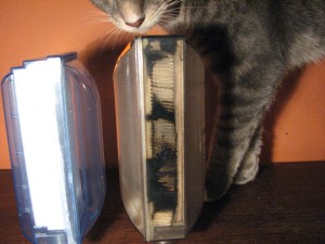 I took the machine back to the shop to check it out before sending it out for repair. I checked the internal filter and found that it was very “dirty”. I replaced the filter and the machine quit alarming so I ran the machine for several minutes and the output levels came up to normal. Below (right top) is a filter out of a smokers machine. The left bottom one is a new , clean filter. And the middle is a side by side view of both filters. Now imagine what this is doing to a smokers lung because this filter was filtering second hand smoke!