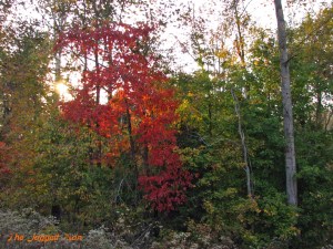 Reds and orange intertwine as leaves fall to the groundLanding softly of the last of the green that once abound