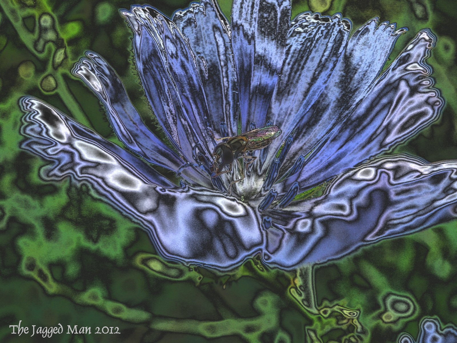 I took a picture last year of a small bee on the flower of a chicory plant. That shot was cool but I decided to test out some effects from my (entry level) photo editing tools. Here is the result and I hope you like it as much as I do!
