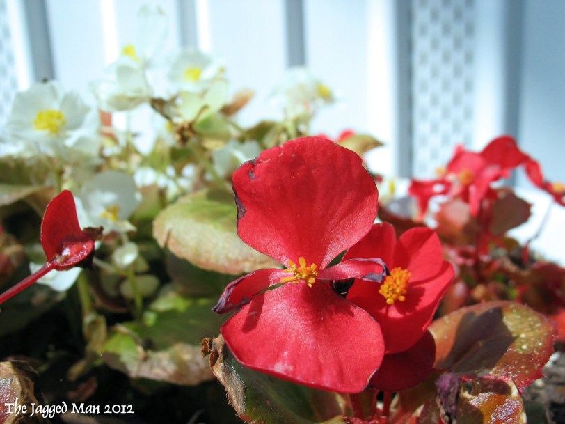 I took this picture a couple of days ago after a relative heavy frost. Most of the flowers in my neck of the woods have bloomed early and the foliage is showing the effects for their early exuberance. The frosts are taking their toll but the flowers beauty still shows through. My life feels a little bit weather tested itself.