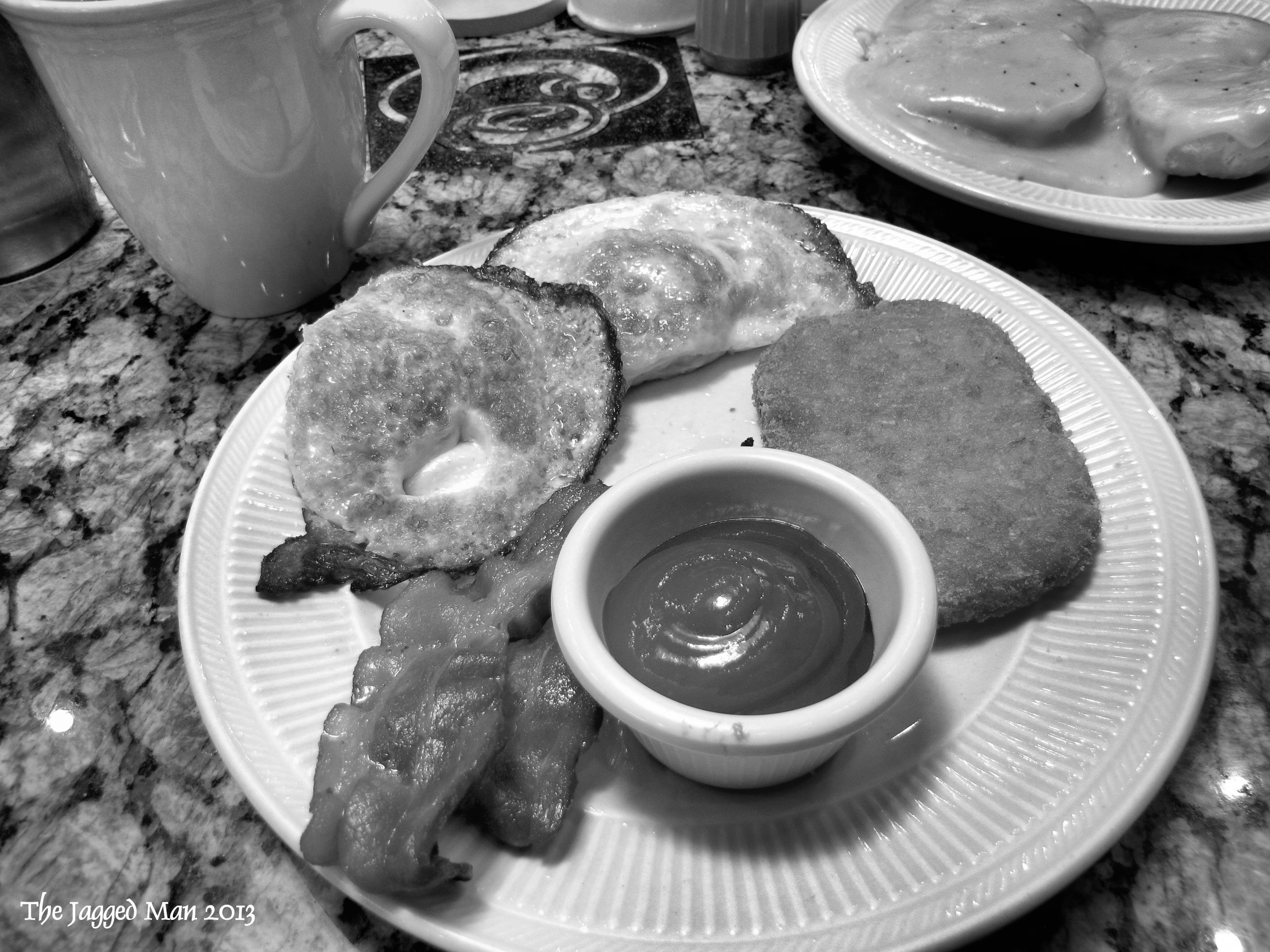 The menu for breakfast was simple and reasonably priced. The Bride and I each ordered the Breakfast Platter with eggs done our way. We shared a full order of Biscuits and Gravy as well. We had water and coffee with our meal. The coffee was hot and fresh and our waitress was on top of the refills. Though I cannot remember how much the Biscuits and gravy were, the Breakfast Platter was $4.99 plus tax. The servers and the cooking staff were very friendly and did their profession proud.