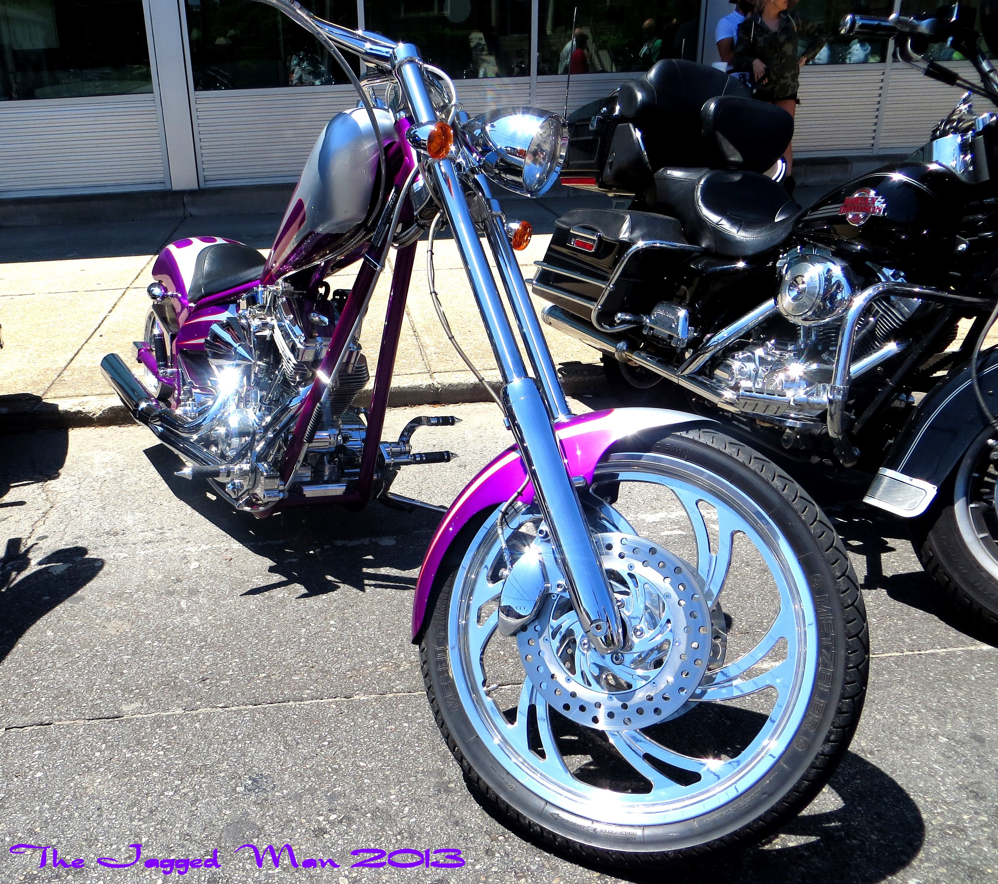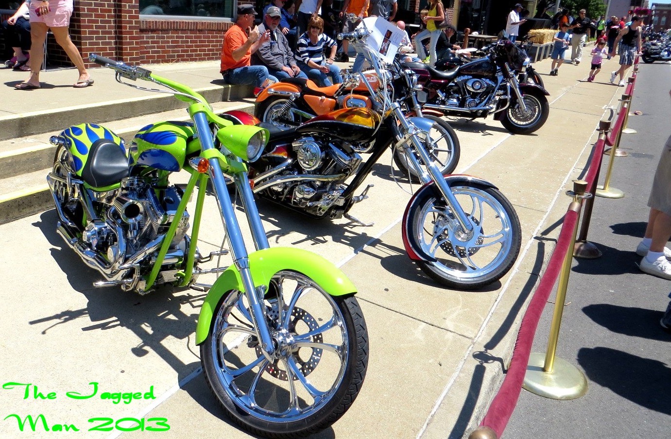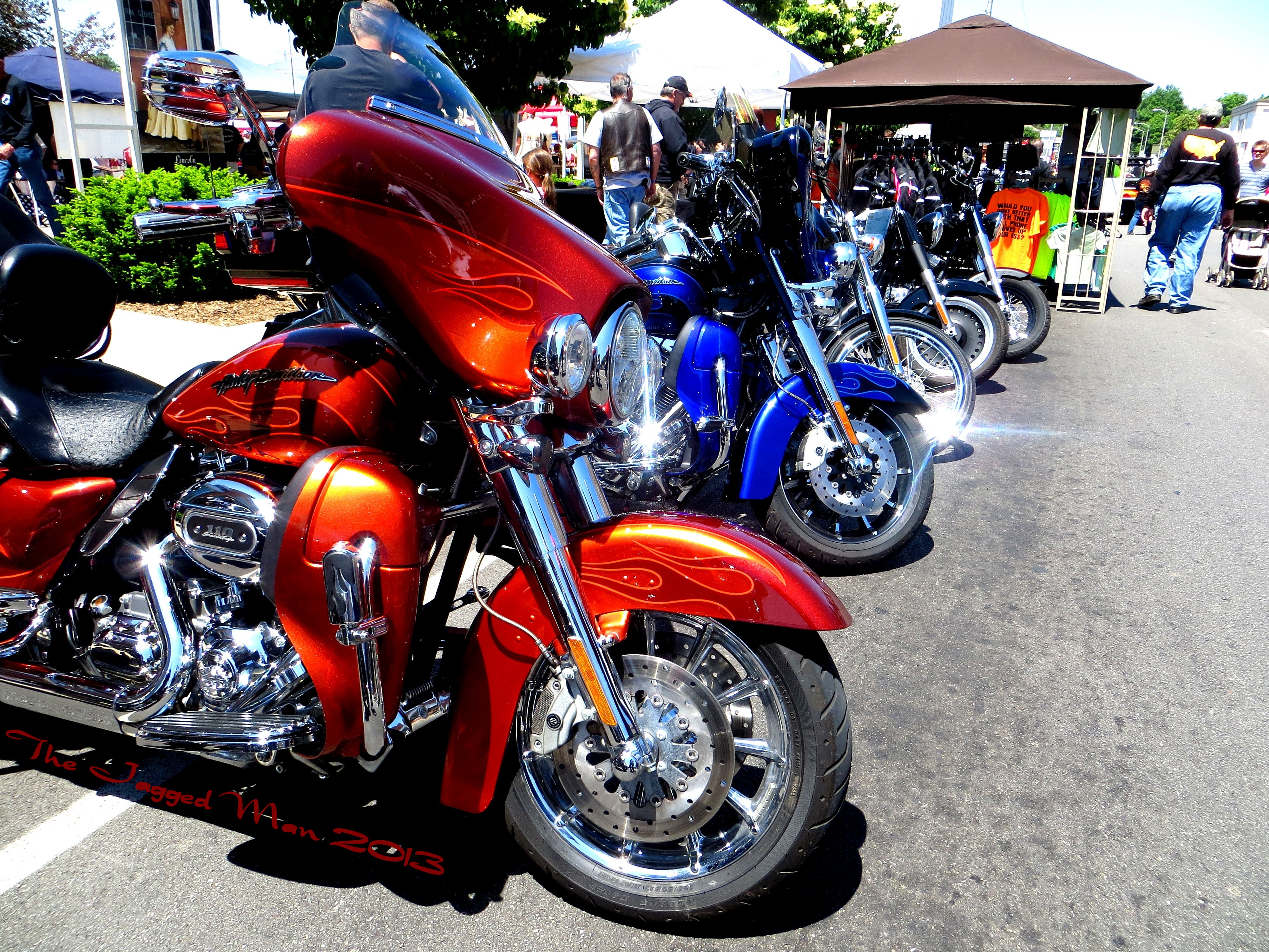The sun was dancing off the chrome drenched motorcycles lined up along the streets.