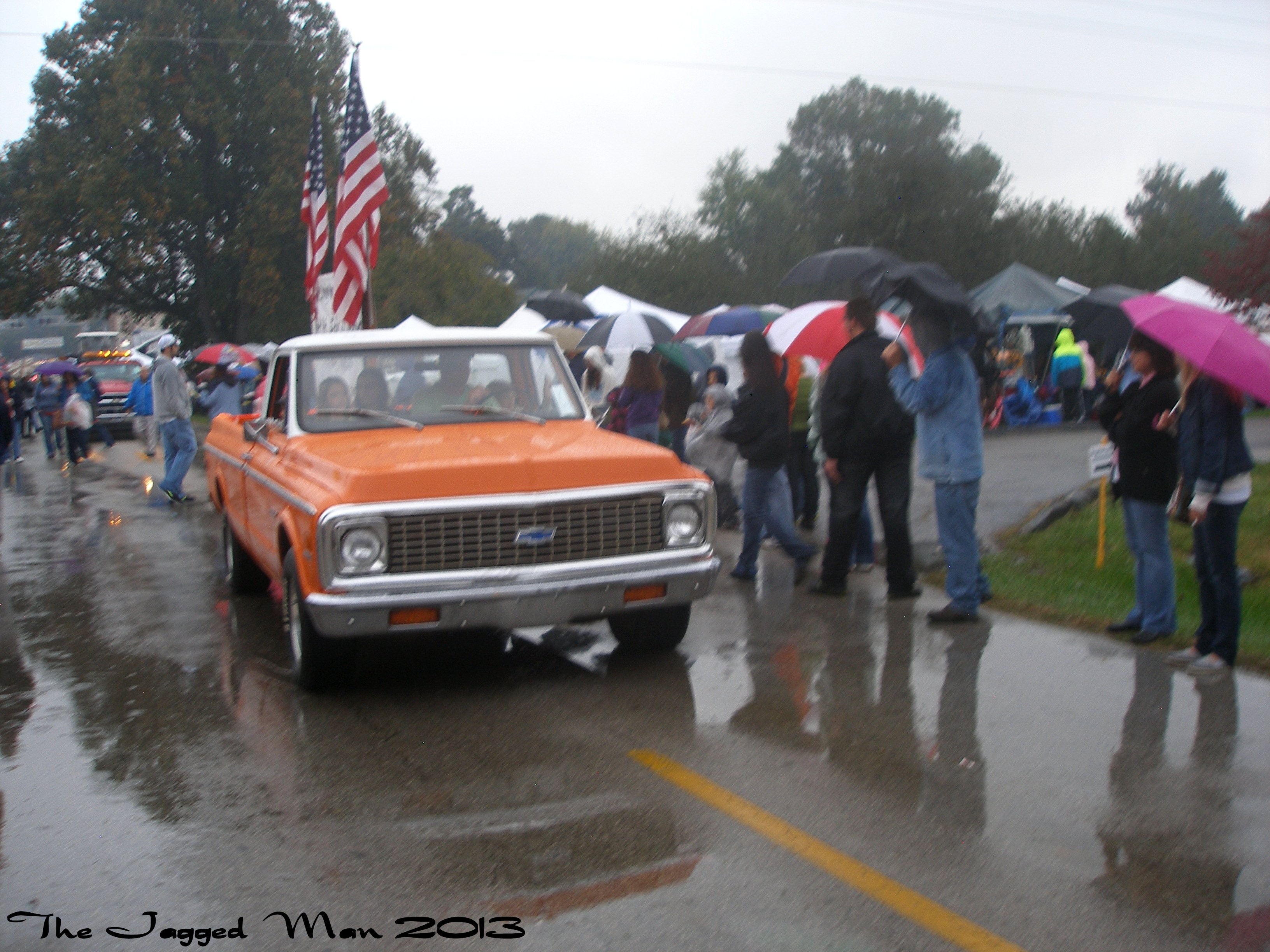 Several weekends back I had the opportunity to witness a small town parade. As a cold October rain fell the boys and girls of the FFA and a ROTC color guard lead the way. It had politicians on stump wagon tours, local businesses ,old cars and trucks as well as some very old farm tractors. Somewhere in the last part of the pack I saw a truck with what appeared to be an American flag or two raised above the bed.