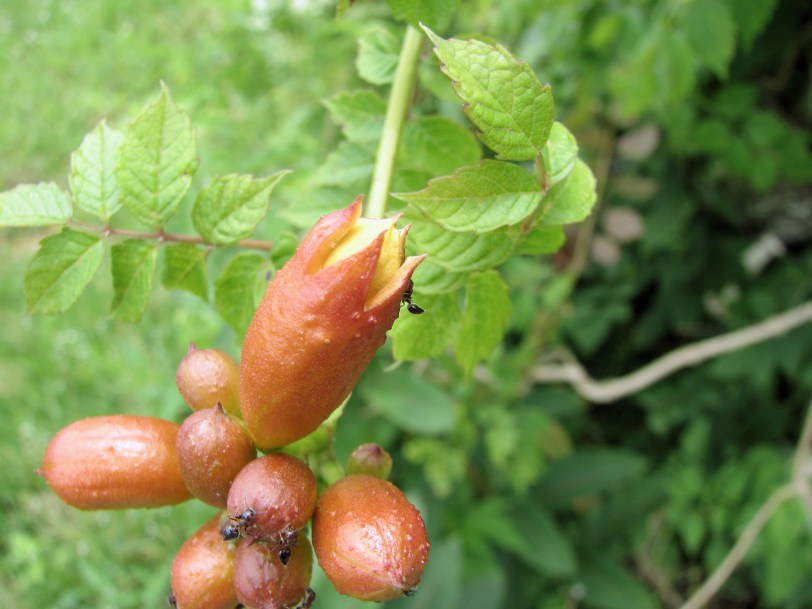 The same bud of this Trumpet Creeper a few hours later. Did the ants eat the shell off so it can bloom?